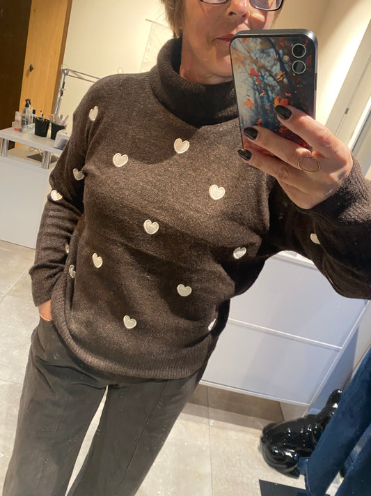Trui nmet streep - bordeaux/bruin/roze/ecru