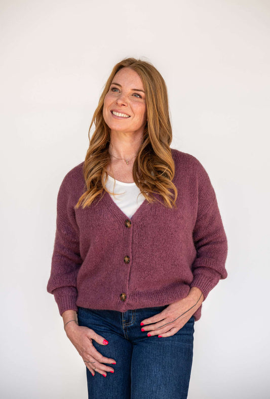 Yaya - Lang grofgebreid vest met kraag en steekzakken