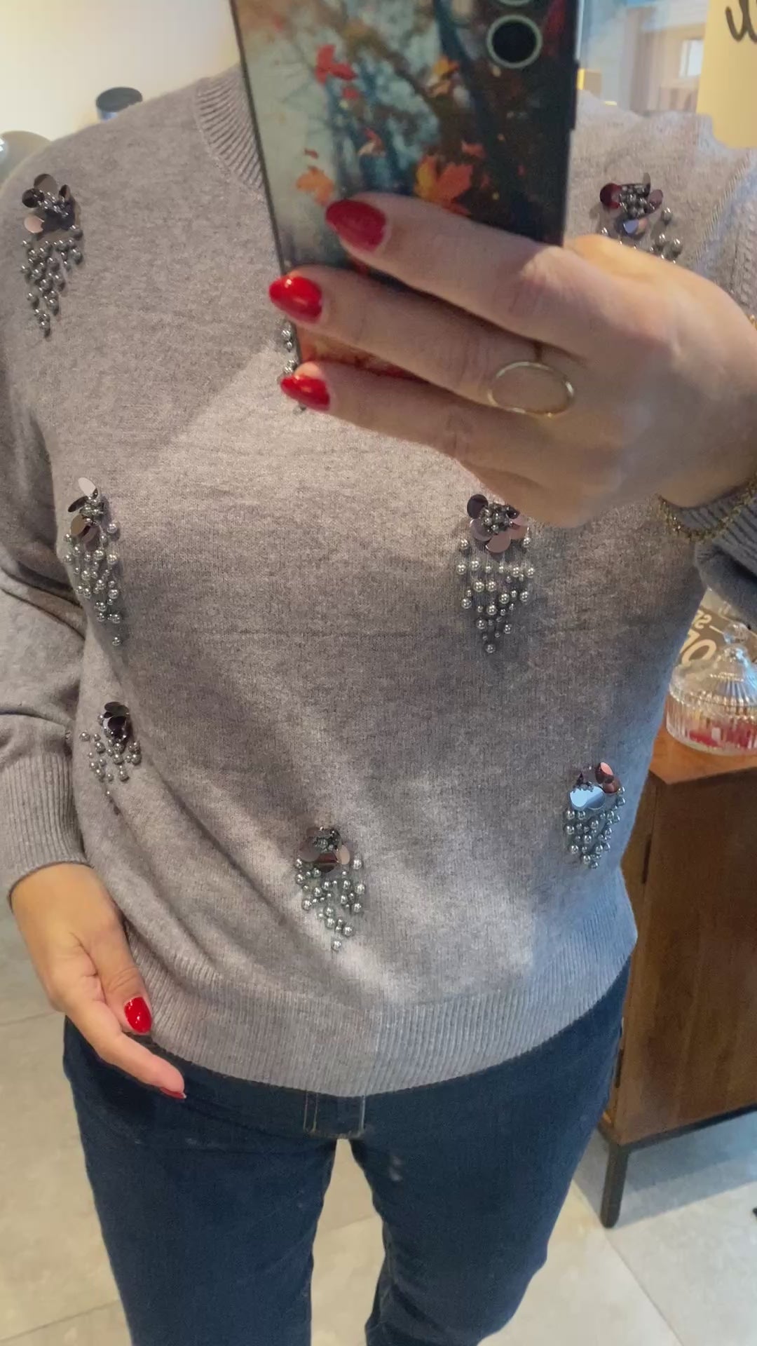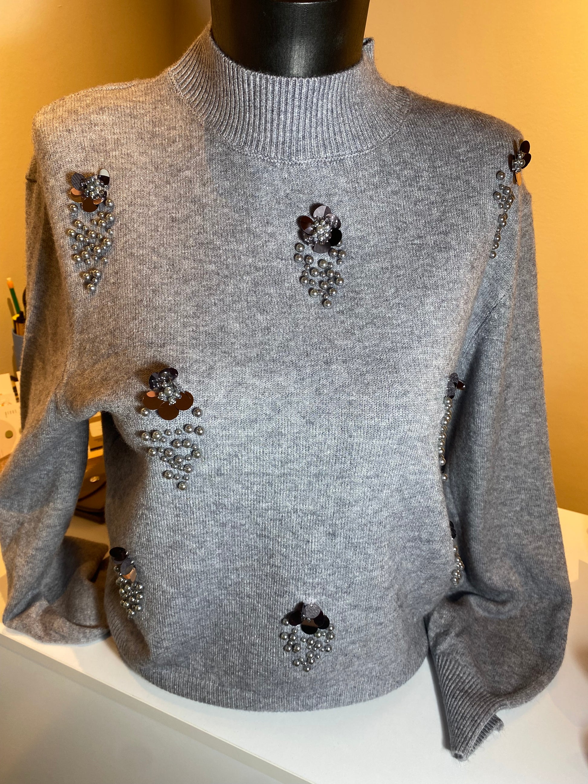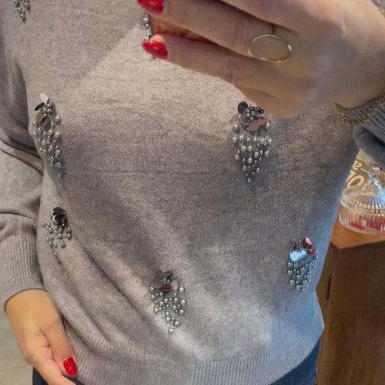 Grijze trui met parels