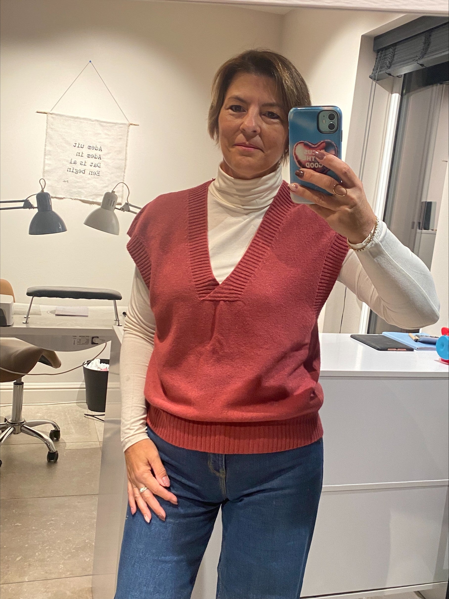 JOLIE is een stijlvol truitje met korte mouwen en een flatterende V-hals, gemaakt van zachte viscose. Perfect te combineren in de herfst met een hemdje of een fijne sous-pull eronder voor een gelaagde look. Comfortabel, veelzijdig en ideaal voor zowel casual als geklede outfits